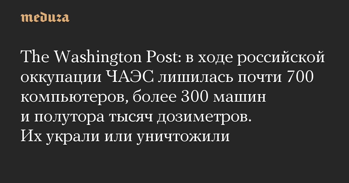 The Washington Post: в ходе российской оккупации ЧАЭС лишилась почти 700 компьютеров, более 300 машин и полутора тысяч дозиметров. Их украли или уничтожили
