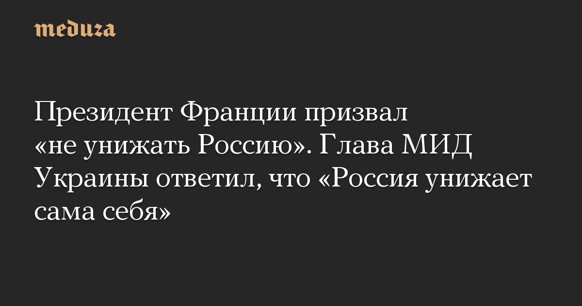 Президент Франции призвал «не унижать Россию». Глава МИД Украины ответил, что «Россия унижает сама себя»