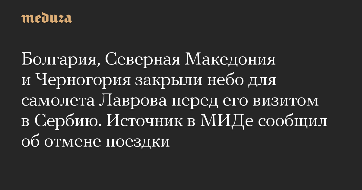 Болгария, Северная Македония и Черногория закрыли небо для самолета Лаврова перед его визитом в Сербию. Источник в МИДе сообщил об отмене поездки