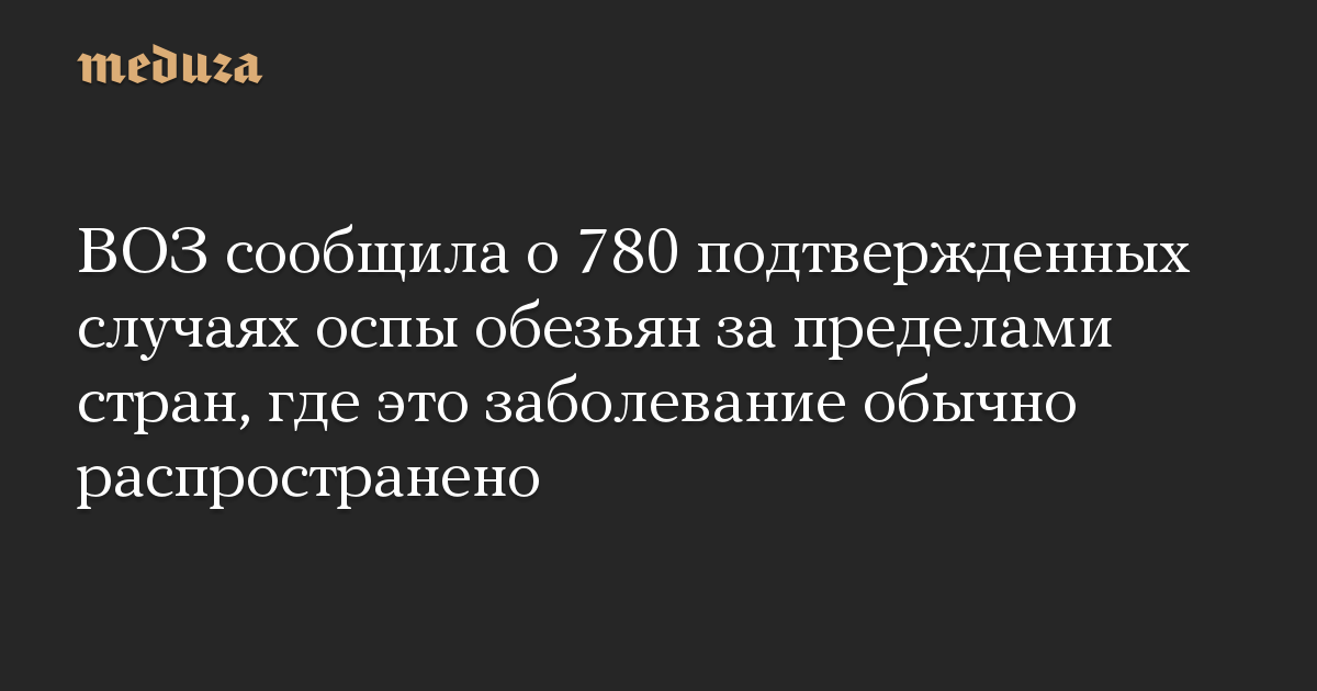 Всемирная организация здравоохранения (ВОЗ) сообщила о 780 подтвержденных случаях оспы обезьян за пределами стран, где это заболевание обычно распространено.