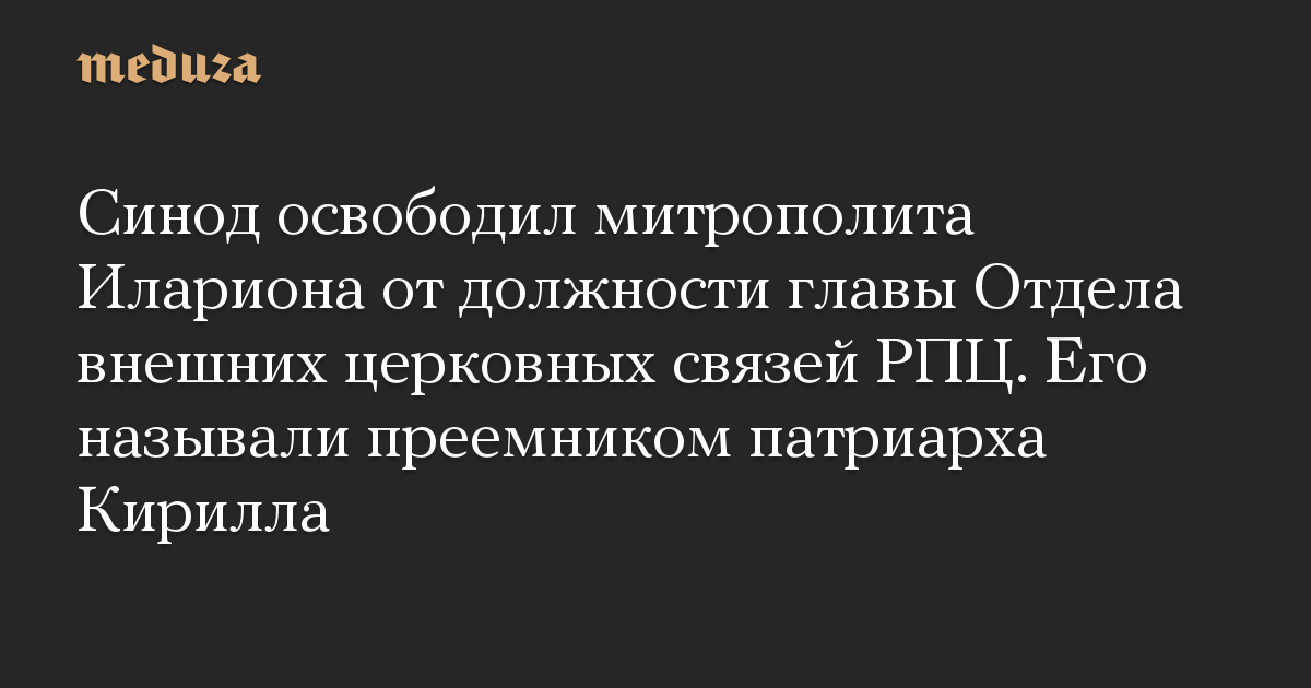 Синод освободил митрополита Илариона от должности главы Отдела внешних церковных связей РПЦ. Его называли преемником патриарха Кирилла