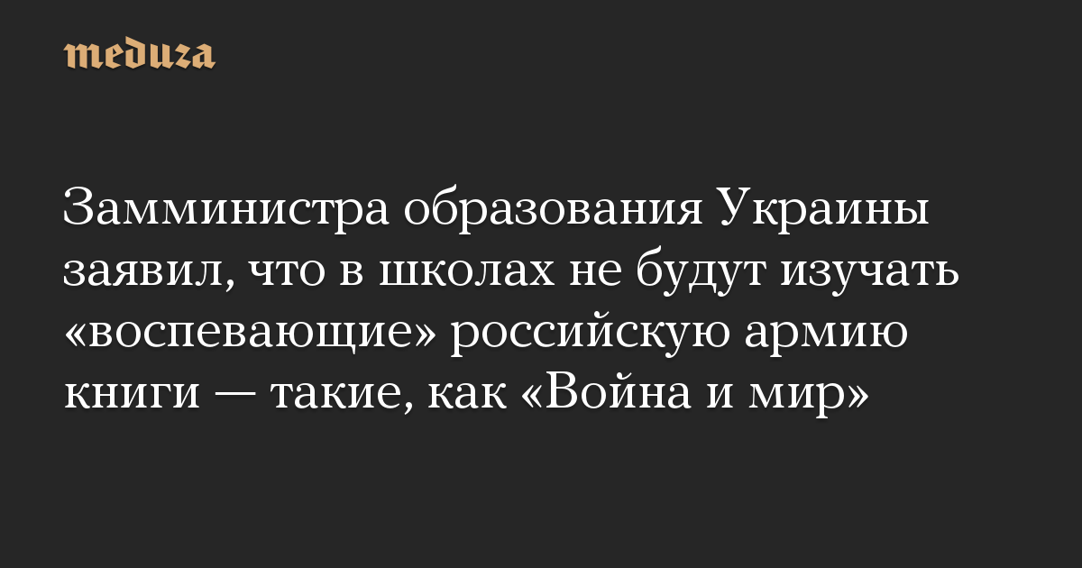 Замминистра образования Украины заявил, что в школах не будут изучать «воспевающие» российскую армию книги — такие, как «Война и мир»