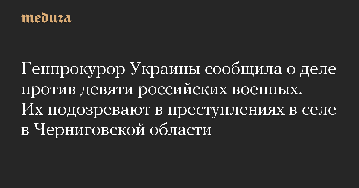 Генпрокурор Украины сообщила о деле против девяти российских военных. Их подозревают в преступлениях в селе в Черниговской области