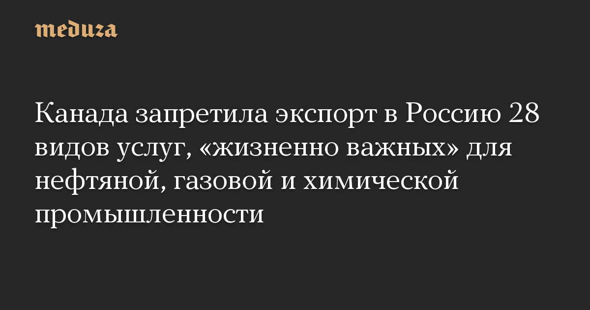 Канада запретила экспорт в Россию 28 видов услуг, «жизненно важных» для нефтяной, газовой и химической промышленности