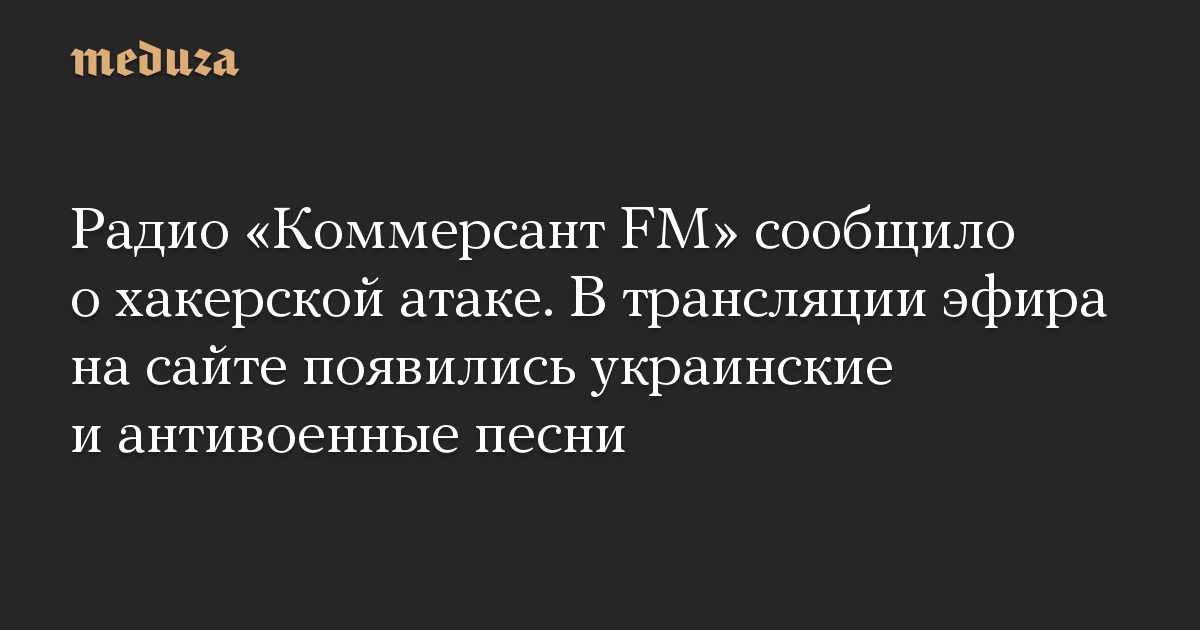 Радио «Коммерсант FM» сообщило о хакерской атаке. В трансляции эфира на сайте появились украинские и антивоенные песни
