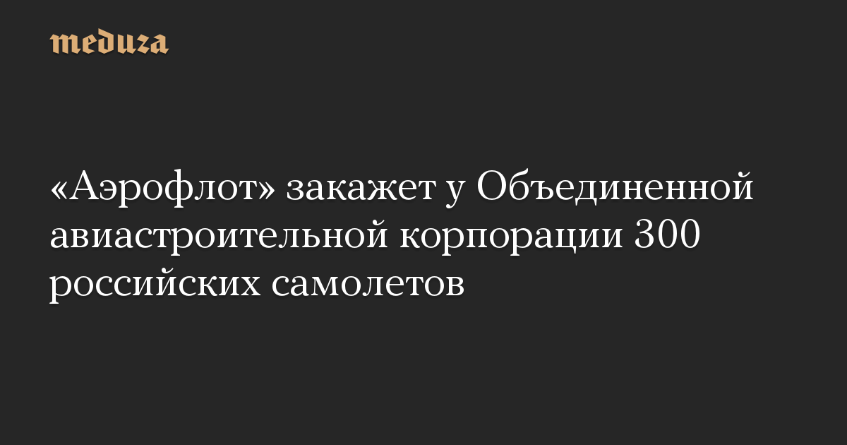 Авиакомпания «Аэрофлот» планирует заказать у Объединенной авиастроительной корпорации (входит в «Ростех») 300 самолетов российского производства, пишут «Ведомости» со ссылкой на источники.