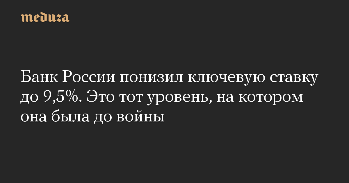 Банк России понизил ключевую ставку до 9,5%. Это тот уровень, на котором она была до войны