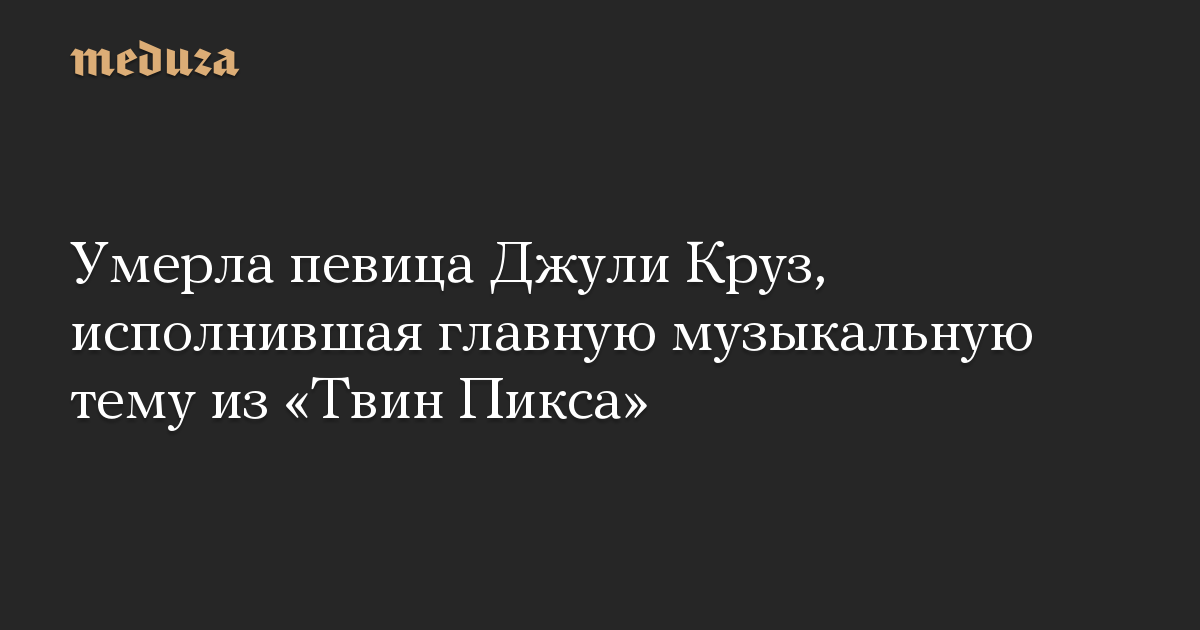 Умерла певица Джули Круз, исполнившая главную музыкальную тему из «Твин Пикса»