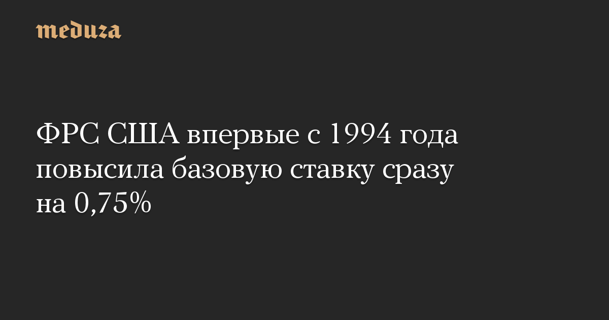 Такое резкое повышение ставки, которая определяет стоимость внутренних займов для американской банковской системы, ФРС проводит впервые с 1994 года.
