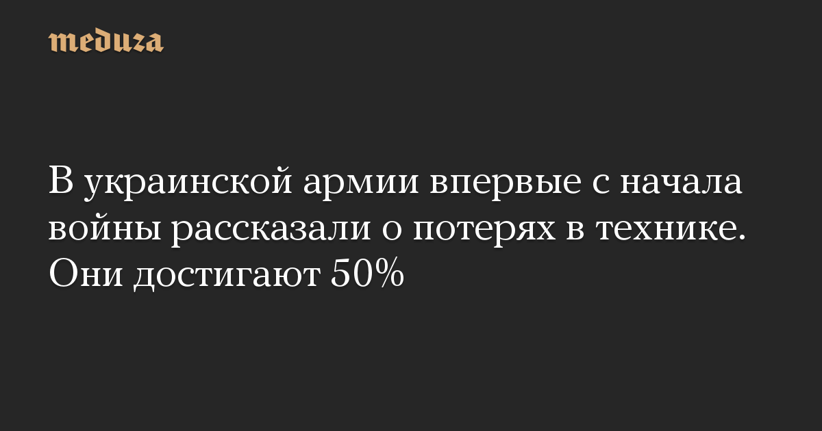 Потери украинской армии в военной технике достигают 50%. Об этом 15 июня заявил в интервью американскому изданию National Defense Magazine генерал Владимир Карпенко, командующий материально-техническим обеспечением Сухопутных войск Украины.
