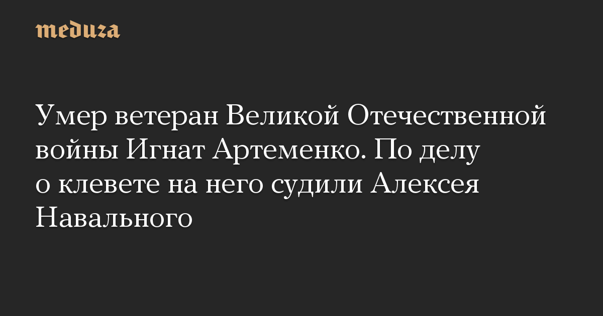 Умер ветеран Великой Отечественной войны Игнат Артеменко. По делу о клевете на него судили Алексея Навального