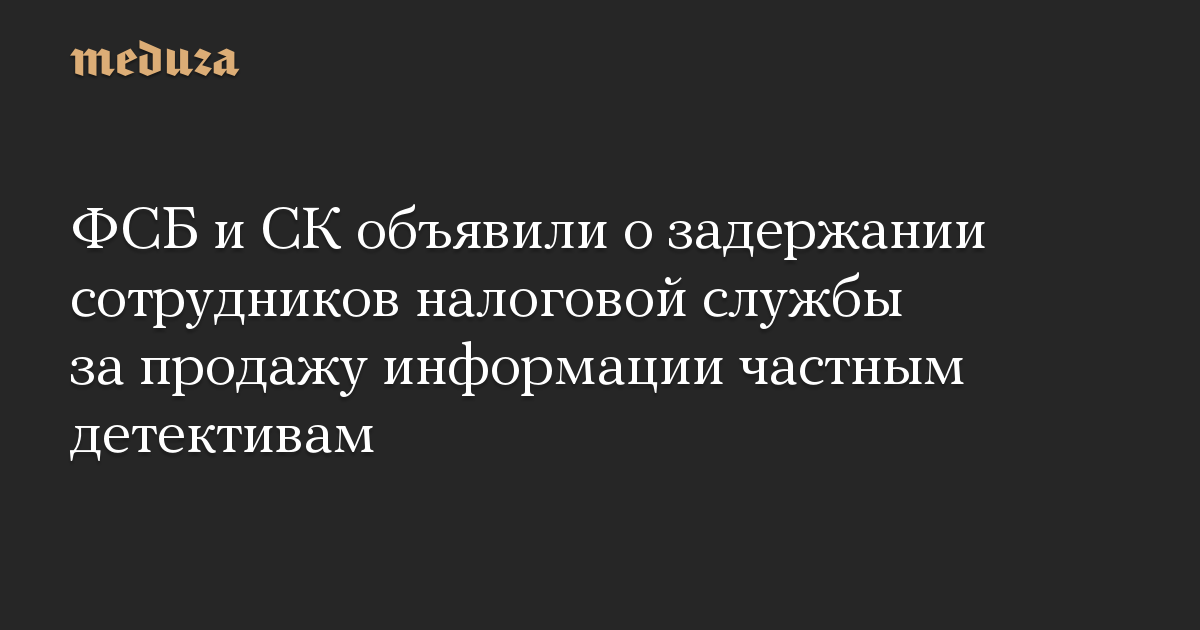 ФСБ и Следственный комитет России сообщили о задержании сотрудников налоговых органов, которые, как утверждается, за деньги передавали частному детективному агентству данные.