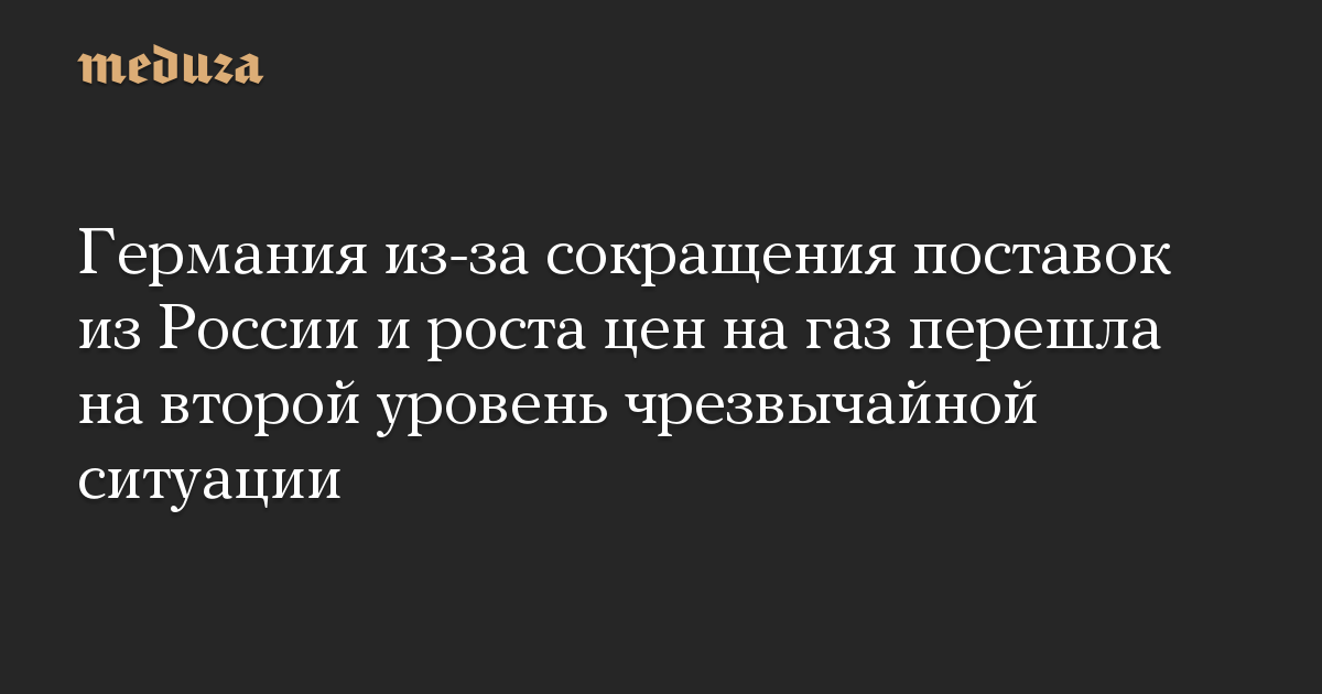 Власти Германии перешли на вторую ступень аварийного плана, разработанного на случай чрезвычайной ситуации в газовой сфере. Причинами для введения повышенного уровня тревоги стало значительное сокращение поставок из России и высокие цены на газ.