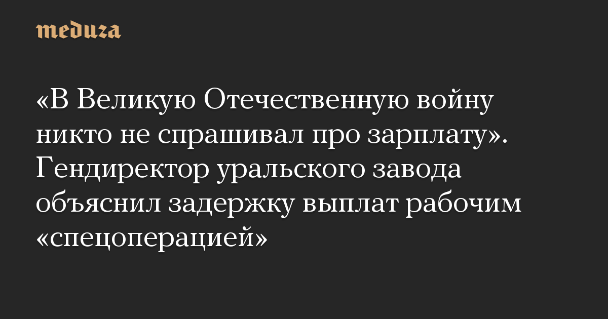 «В Великую Отечественную войну никто не спрашивал про зарплату». Гендиректор уральского завода объяснил задержку выплат рабочим «спецоперацией»