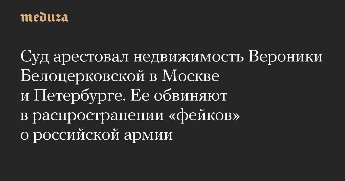 Суд арестовал недвижимость Вероники Белоцерковской в Москве и Петербурге. Ее обвиняют в распространении «фейков» о российской армии
