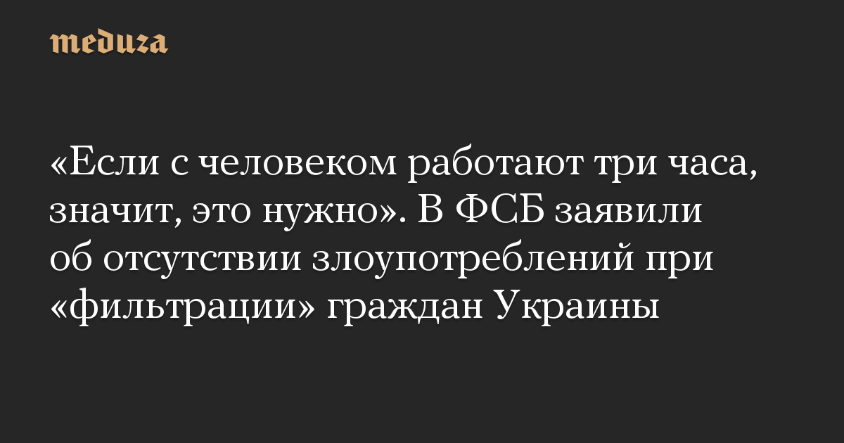 «Если с человеком работают три часа, значит, это нужно». В ФСБ заявили об отсутствии злоупотреблений при «фильтрации» граждан Украины