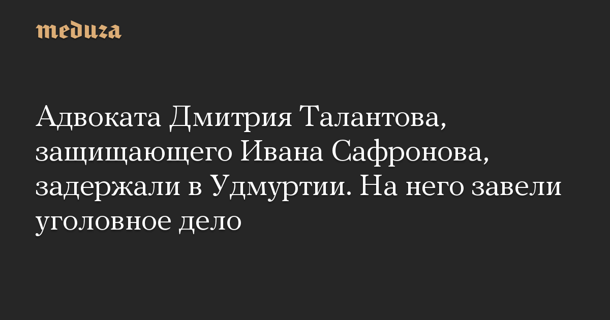 Обновление: Дело на Дмитрия Талантова, сообщил «Первый отдел», завели по статье о распространении «фейков» о российской армии. Поводом стал пост в одной из соцсетей, опубликованный в апреле. По данным источника ТАСС, дело в отношении адвоката возбудило Следственное управление СК РФ по Москве. Ожидается, что Талантова доставят для следственных действий из Удмуртии в Москву.