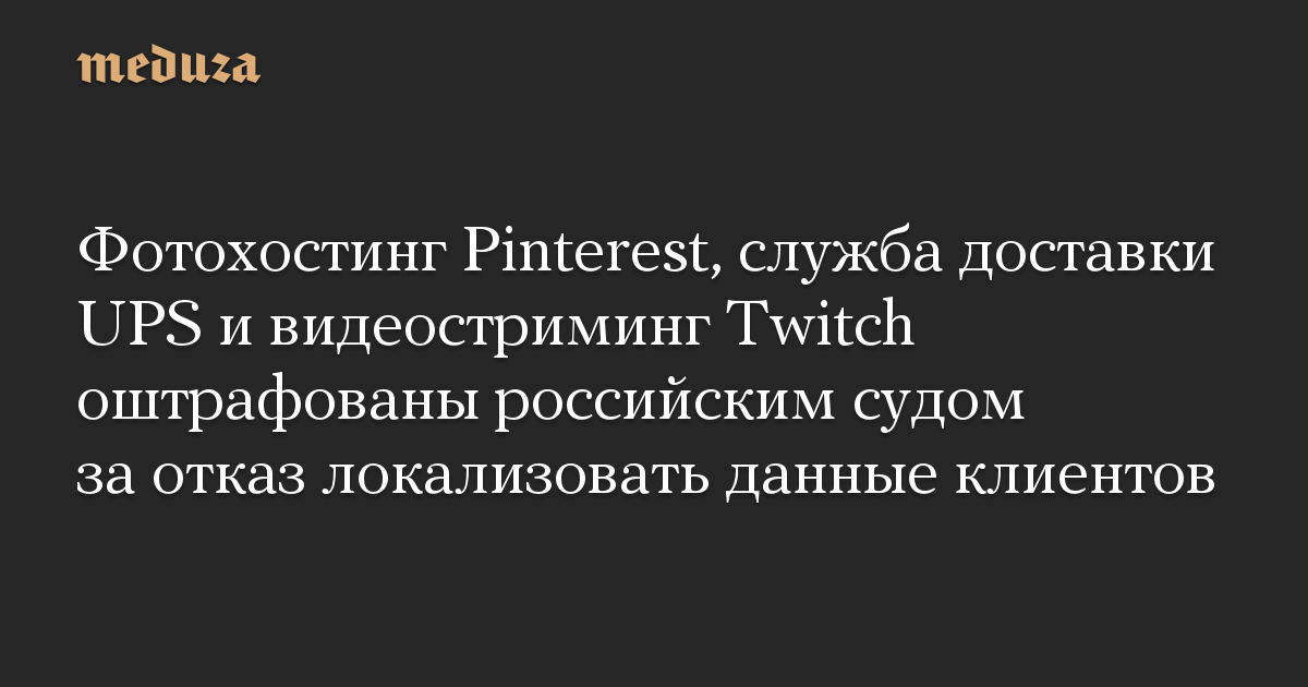 Фотохостинг Pinterest, служба доставки UPS и видеостриминг Twitch оштрафованы российским судом за отказ локализовать данные клиентов