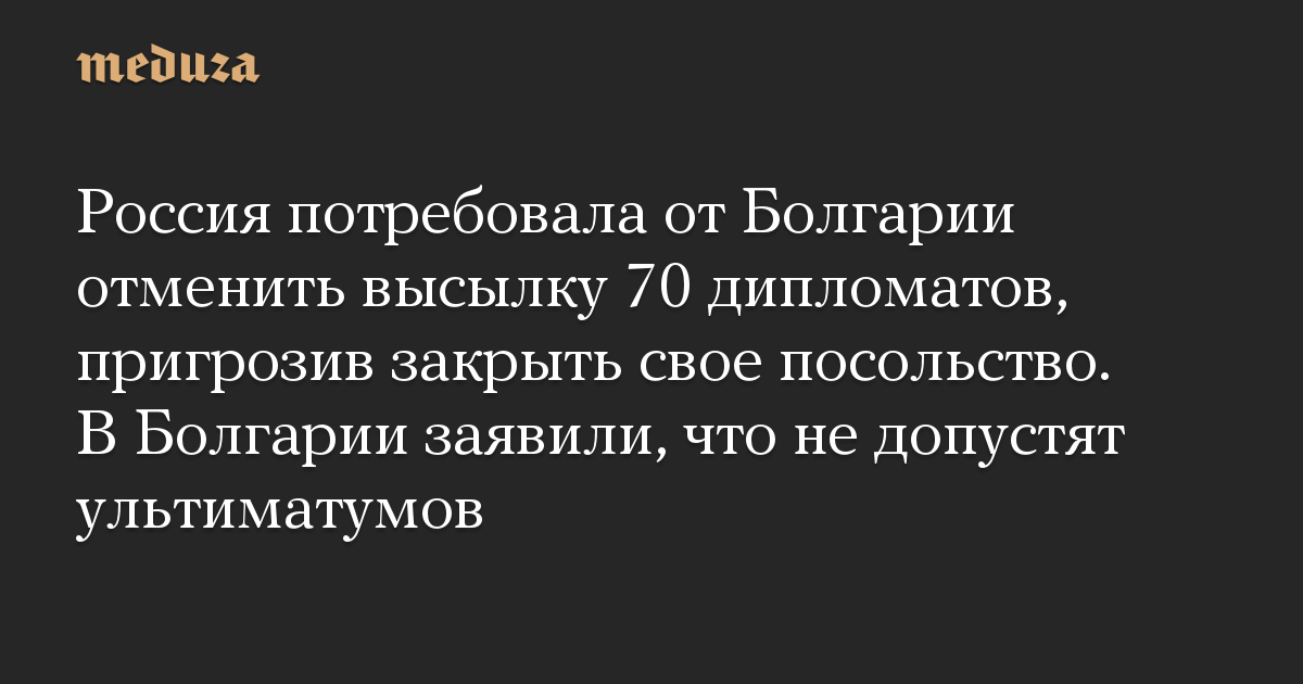 Россия потребовала от Болгарии отменить высылку 70 дипломатов, пригрозив закрыть свое посольство. В Болгарии заявили, что не допустят ультиматумов