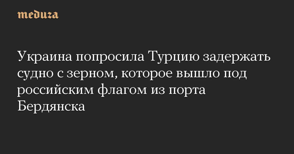 Украина обратилась к Турции с просьбой задержать и арестовать грузовое судно, перевозившее под российским флагом украинское зерно из Бердянска Запорожской области. Об этом сообщает Reuters. Посол Украины в Турции Василий Боднар подтвердил, что попросил турецкие власти принять срочные меры в отношении судна.