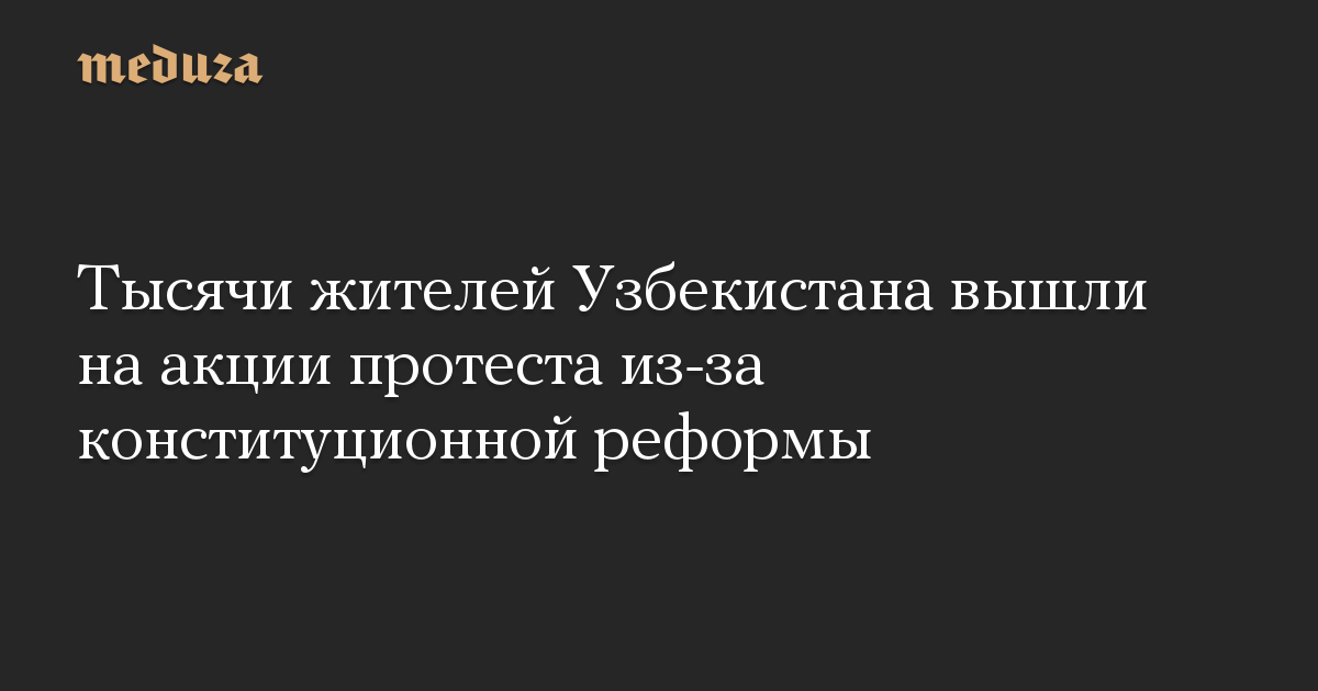 Тысячи жителей Нукуса — столицы республики Каракалпакстан, входящей в состав Узбекистана — вышли на акции протеста из-за конституционной реформы. Об этом сообщают Turkmen.news и «Радио Озодлик» (узбекская редакция «Радио Свобода»).
