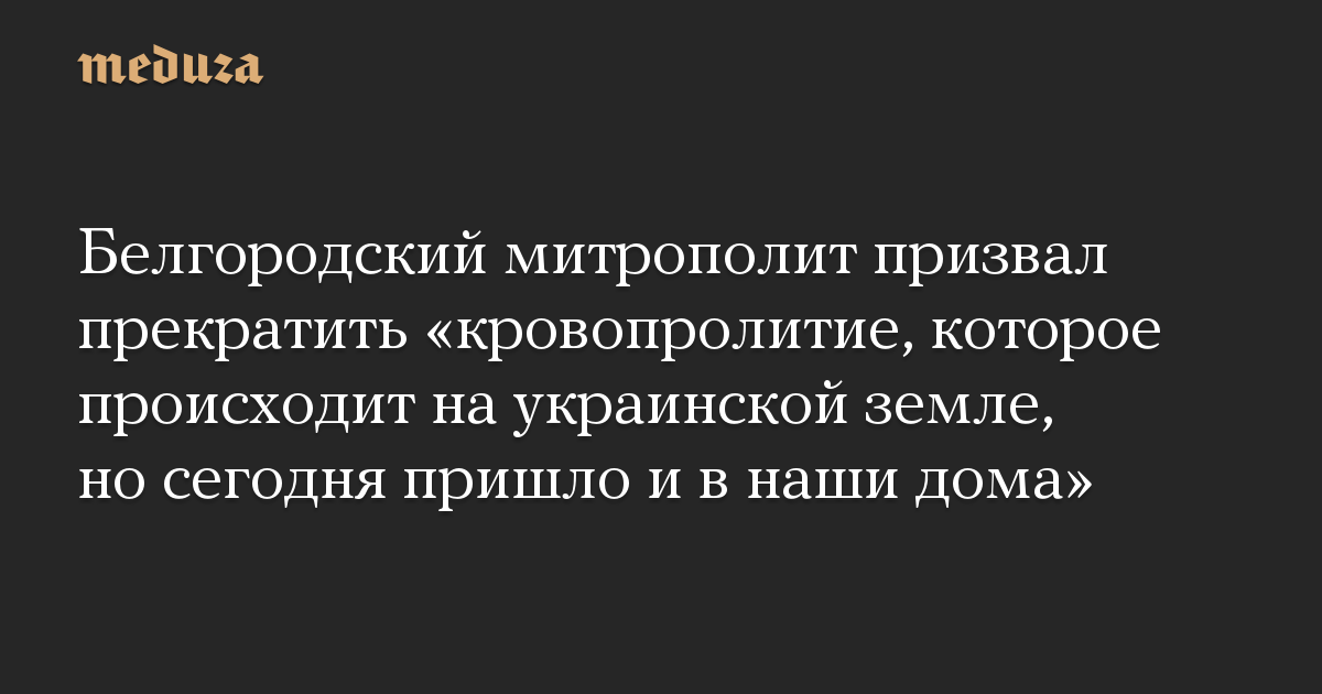 Белгородский митрополит призвал прекратить «кровопролитие, которое происходит на украинской земле, но сегодня пришло и в наши дома»