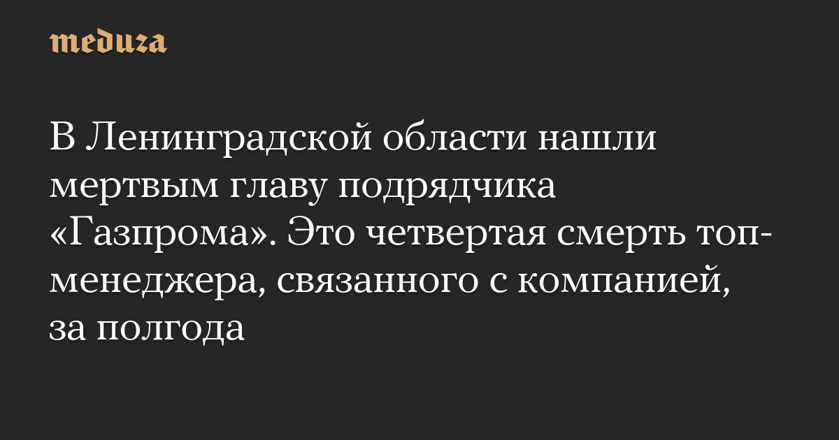 В Ленинградской области нашли мертвым главу подрядчика «Газпрома». Это четвертая смерть топ-менеджера, связанного с компанией, за полгода
