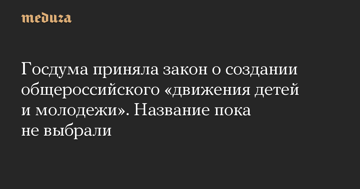 Госдума приняла закон о создании общероссийского «движения детей и молодежи». Название пока не выбрали