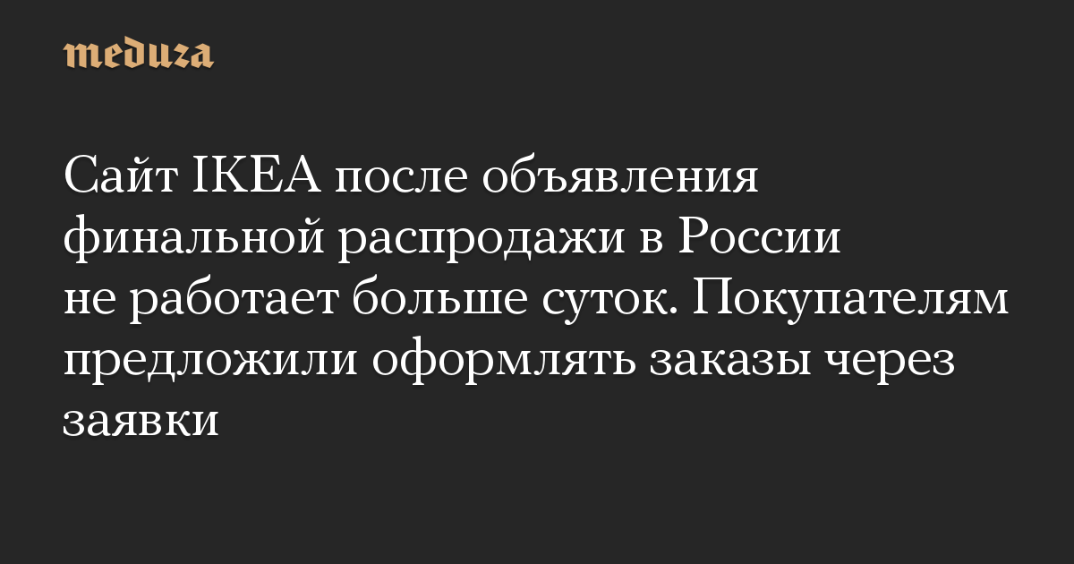 Сайт IKEA после объявления финальной распродажи в России не работает больше суток. Покупателям предложили оформлять заказы через заявки