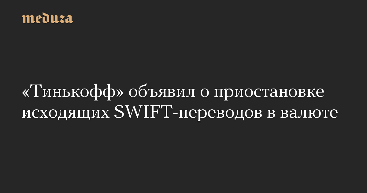 Банк «Тинькофф» объявил, что с 6 июля по 1 октября приостанавливает совершение исходящих SWIFT-переводов «во всех валютах, включая доллары США».