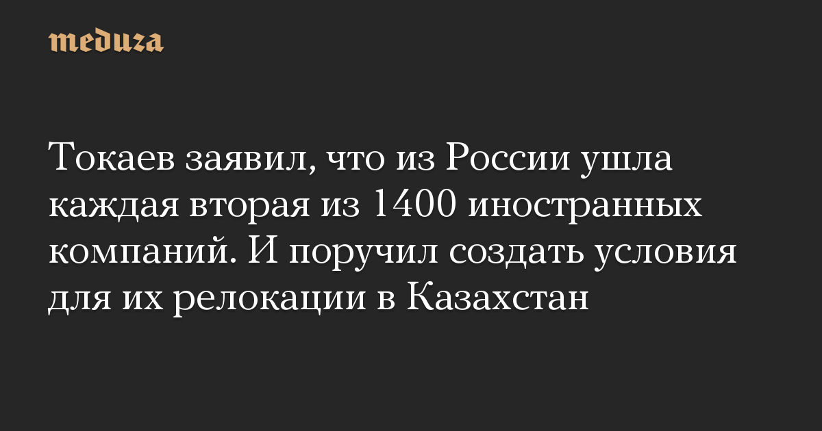 Токаев заявил, что из России ушла каждая вторая из 1400 иностранных компаний. И поручил создать условия для их релокации в Казахстан