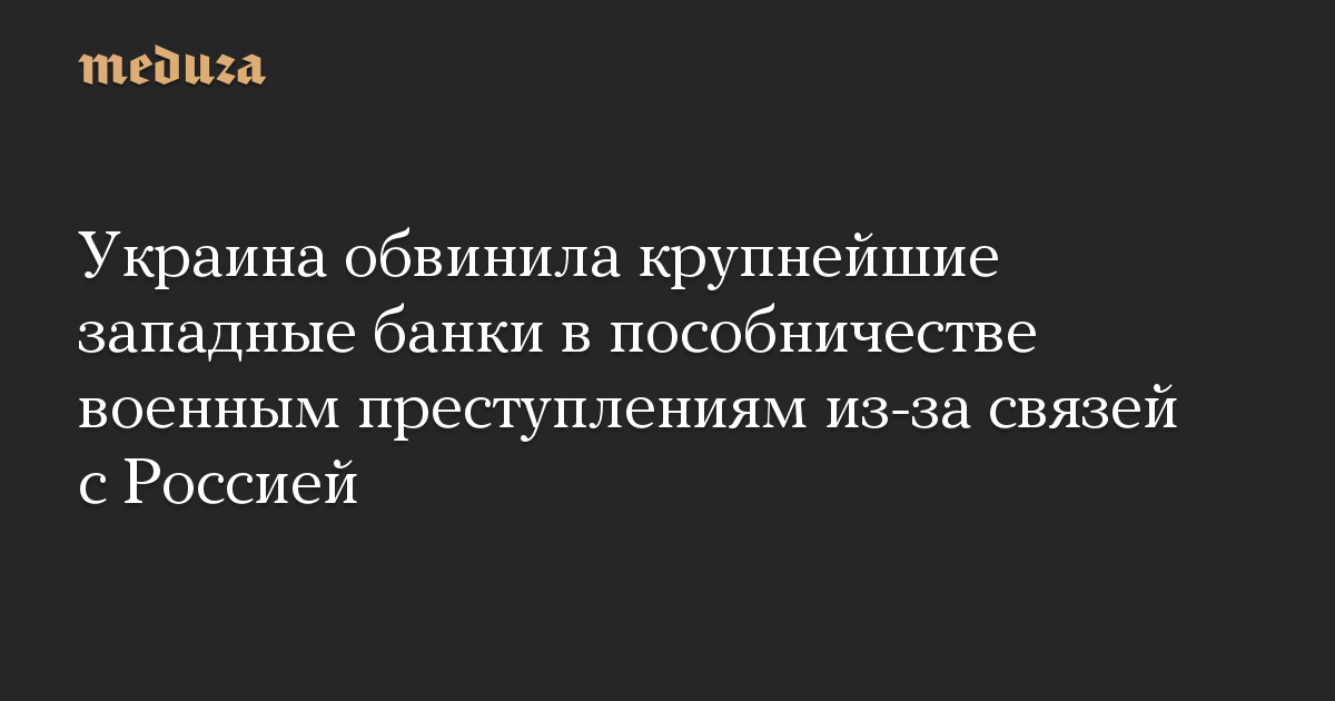Украина обвинила крупнейшие западные банки в пособничестве военным преступлениям из-за связей с Россией