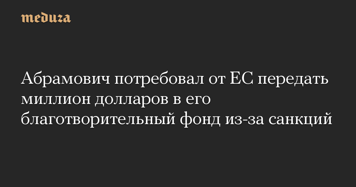 Абрамович потребовал от ЕС передать миллион долларов в его благотворительный фонд из-за санкций