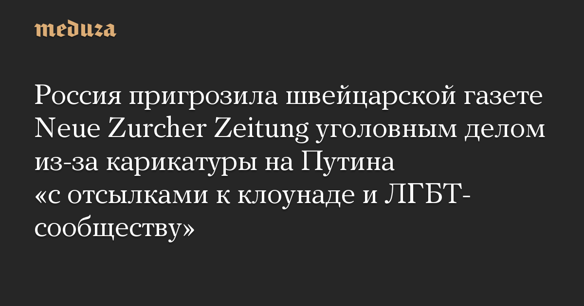 Россия пригрозила швейцарской газете Neue Zurcher Zeitung уголовным делом из-за карикатуры на Путина «с отсылками к клоунаде и ЛГБТ-сообществу»