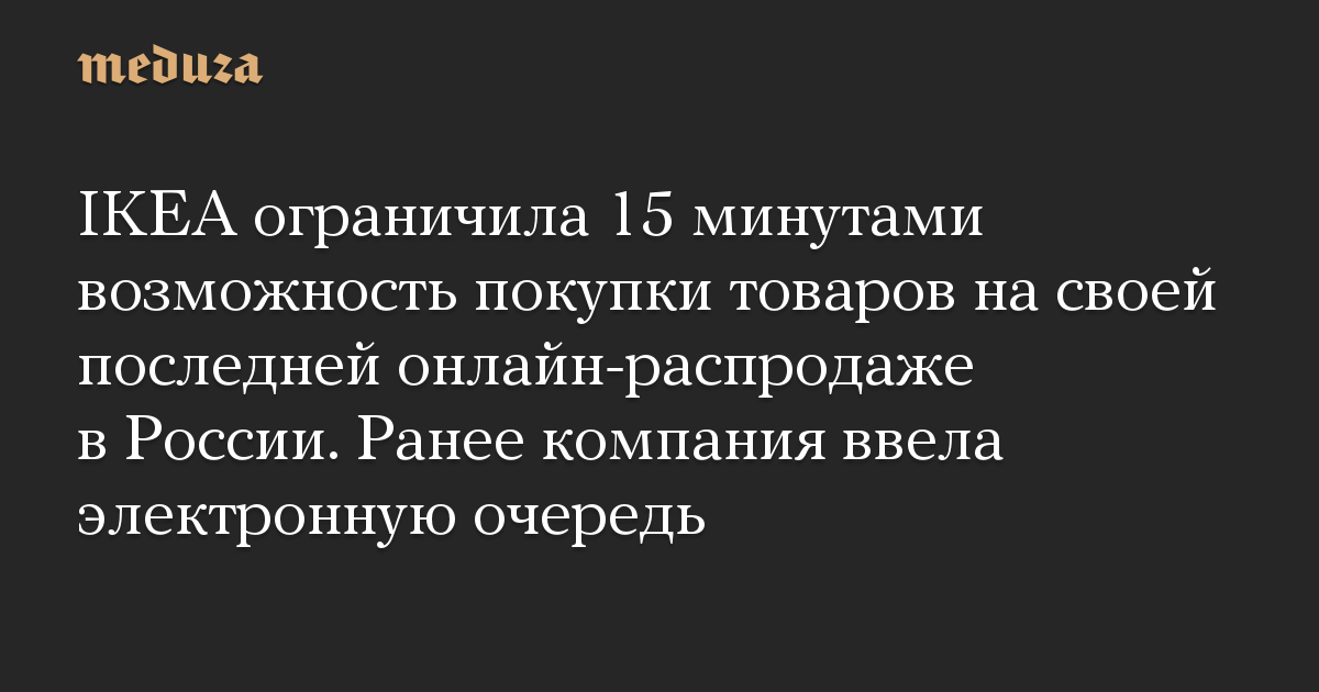IKEA ограничила 15 минутами возможность покупки товаров на своей последней онлайн-распродаже в России. Ранее компания ввела электронную очередь