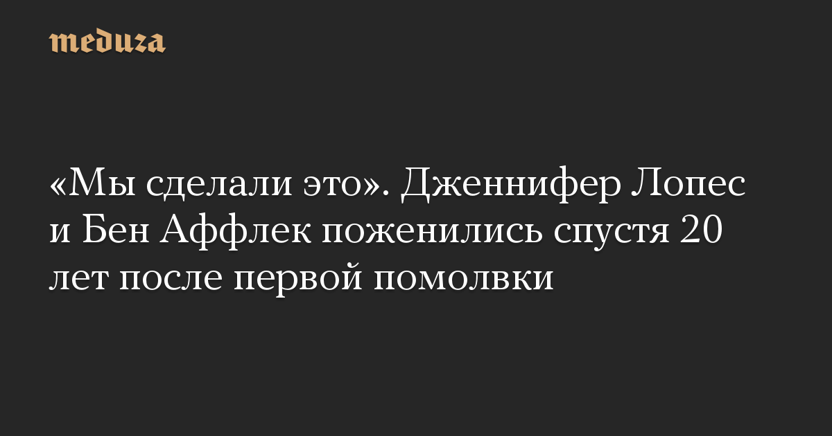 «Мы сделали это». Дженнифер Лопес и Бен Аффлек поженились спустя 20 лет после первой помолвки