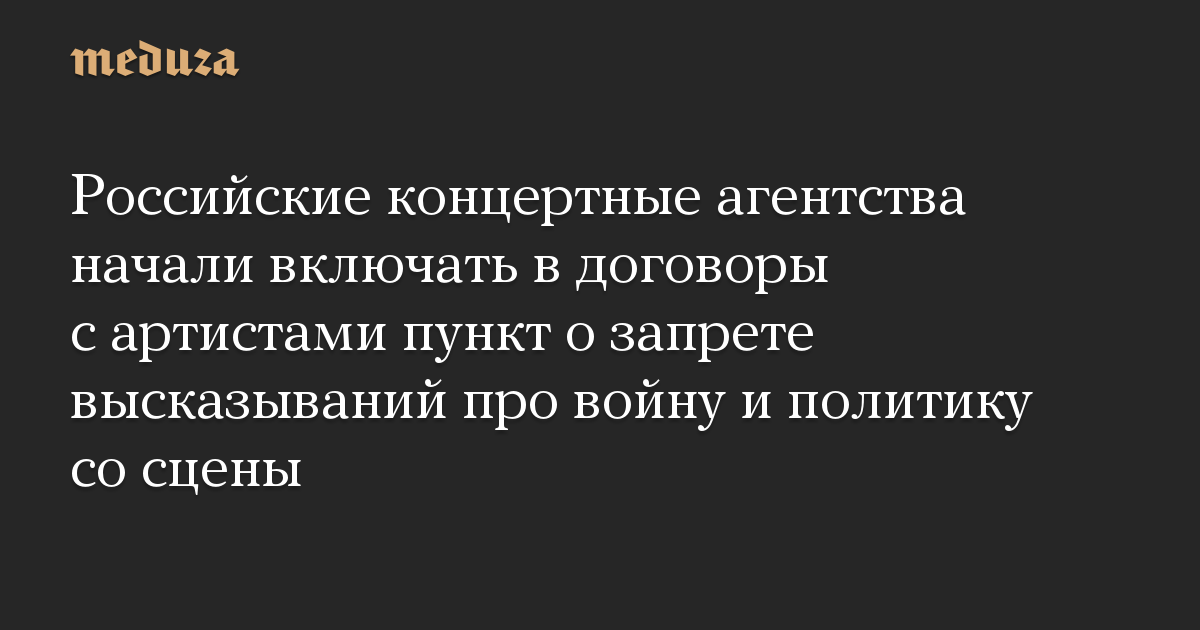 Российские концертные агентства начали включать в договоры с артистами пункт о запрете высказываний про войну и политику со сцены
