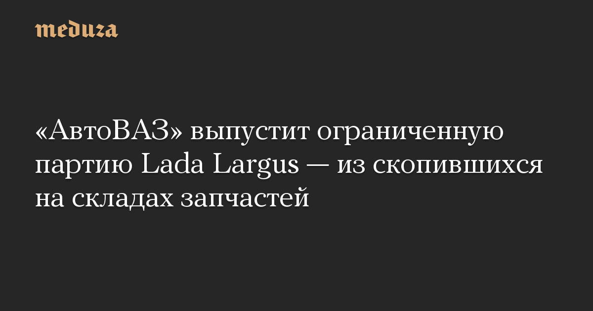 Компания «АвтоВАЗ» выпустит ограниченную партию автомобилей Lada Largus, которая будет собрана из скопившихся на складах запчастей. Об этом пишет ТАСС со ссылкой на сообщение компании.