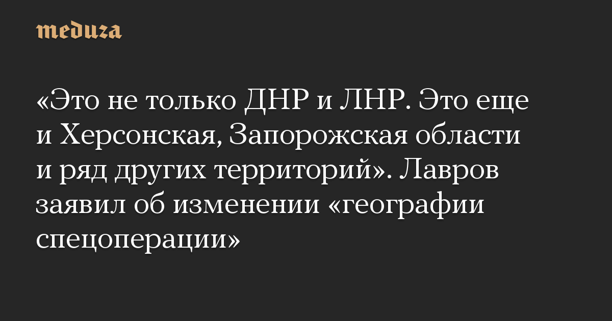«Это не только ДНР и ЛНР. Это еще и Херсонская, Запорожская области и ряд других территорий». Лавров заявил об изменении «географии спецоперации»