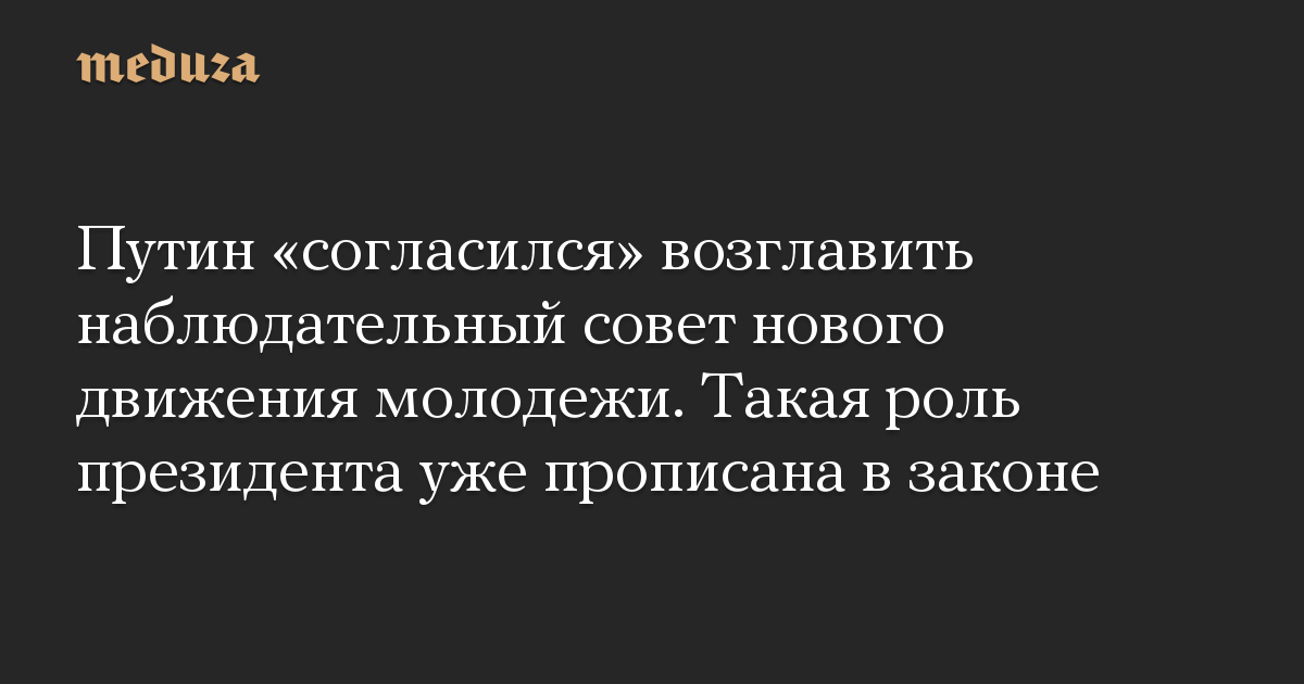 Путин «согласился» возглавить наблюдательный совет нового движения молодежи. Такая роль президента уже прописана в законе