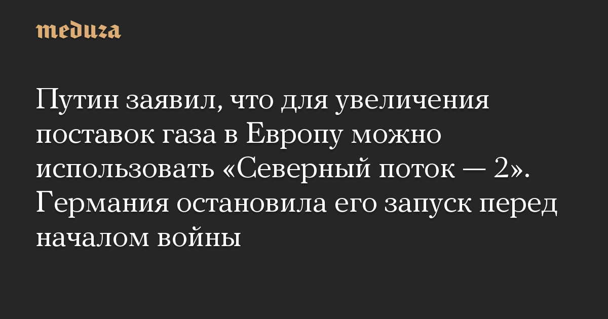 Путин заявил, что для увеличения поставок газа в Европу можно использовать «Северный поток — 2». Германия остановила его запуск перед началом войны