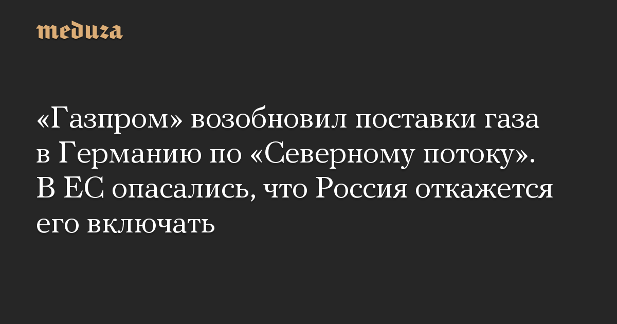 «Газпром» возобновил поставки газа в Германию по «Северному потоку». В ЕС опасались, что Россия откажется его включать
