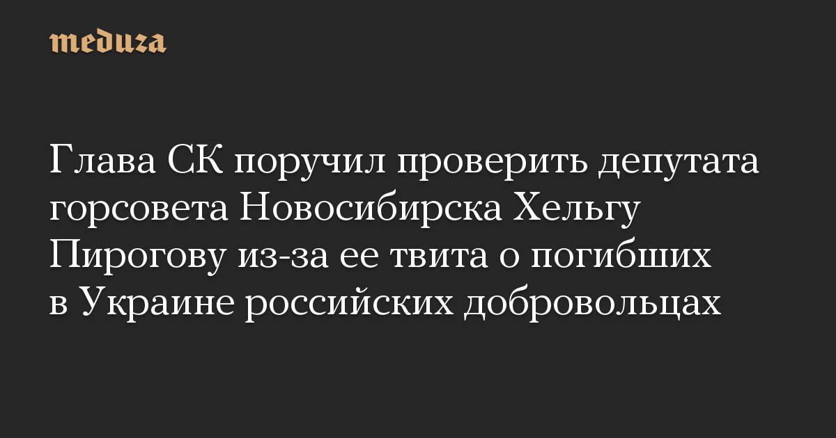 Глава СК поручил проверить депутата горсовета Новосибирска Хельгу Пирогову из-за ее твита о погибших в Украине российских добровольцах