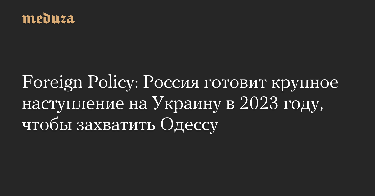 Foreign Policy: Россия готовит крупное наступление на Украину в 2023 году, чтобы захватить Одессу