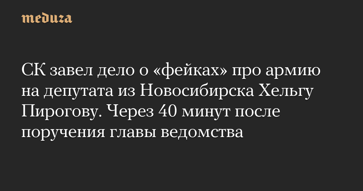СК завел дело о «фейках» про армию на депутата из Новосибирска Хельгу Пирогову. Через 40 минут после поручения главы ведомства