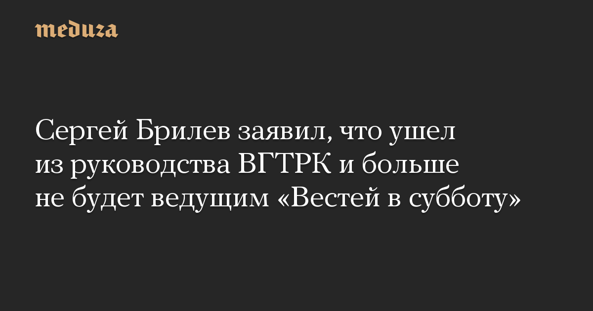 Сергей Брилев заявил, что ушел из руководства ВГТРК и больше не будет ведущим «Вестей в субботу»