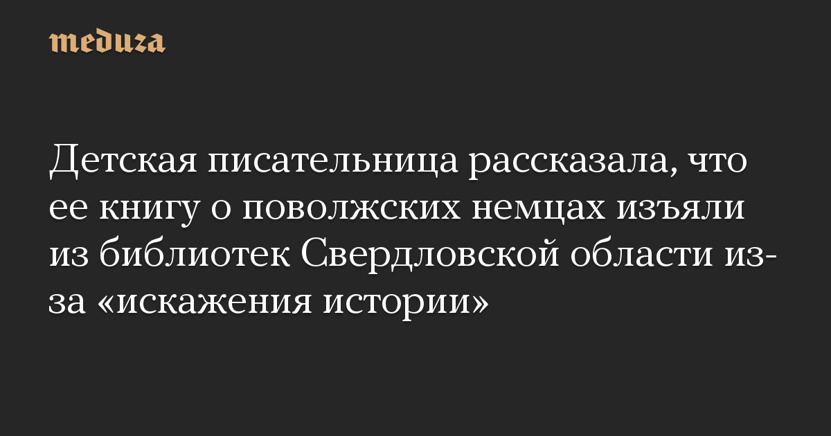 Детская писательница рассказала, что ее книгу о поволжских немцах изъяли из библиотек Свердловской области из-за «искажения истории»