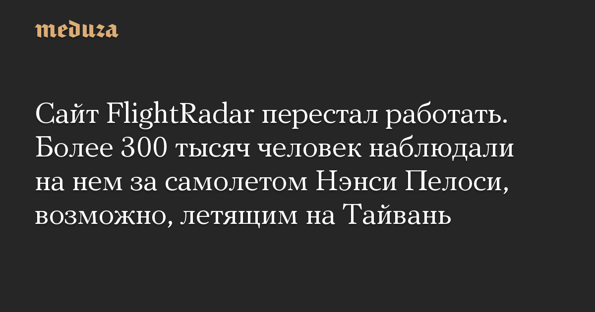 Сайт FlightRadar перестал работать. Более 300 тысяч человек наблюдали на нем за самолетом Нэнси Пелоси, возможно, летящим на Тайвань