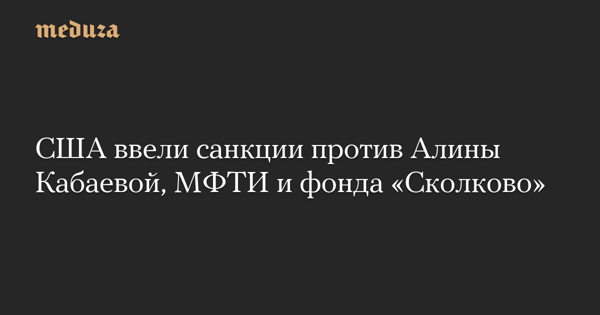 США ввели санкции против Алины Кабаевой, МФТИ и фонда «Сколково»