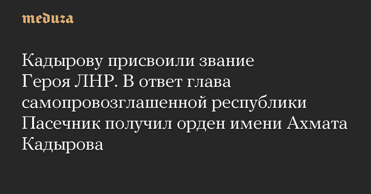 Кадырову присвоили звание Героя ЛНР. В ответ глава самопровозглашенной республики Пасечник получил орден имени Ахмата Кадырова
